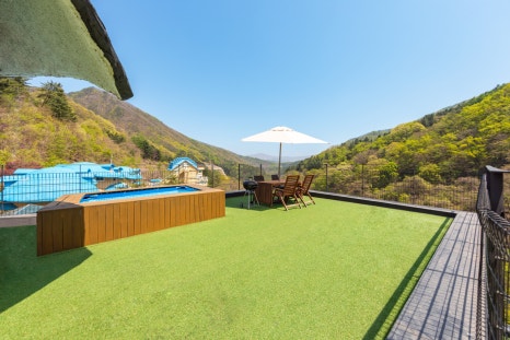 소형견부터 대형견까지 최대 2마리까지 동반이 가능하며, 잔디 운동장과 편리한 매점도 구비되어 있어 대형견이 마음껏 뛰어놀 수 있습니다.
