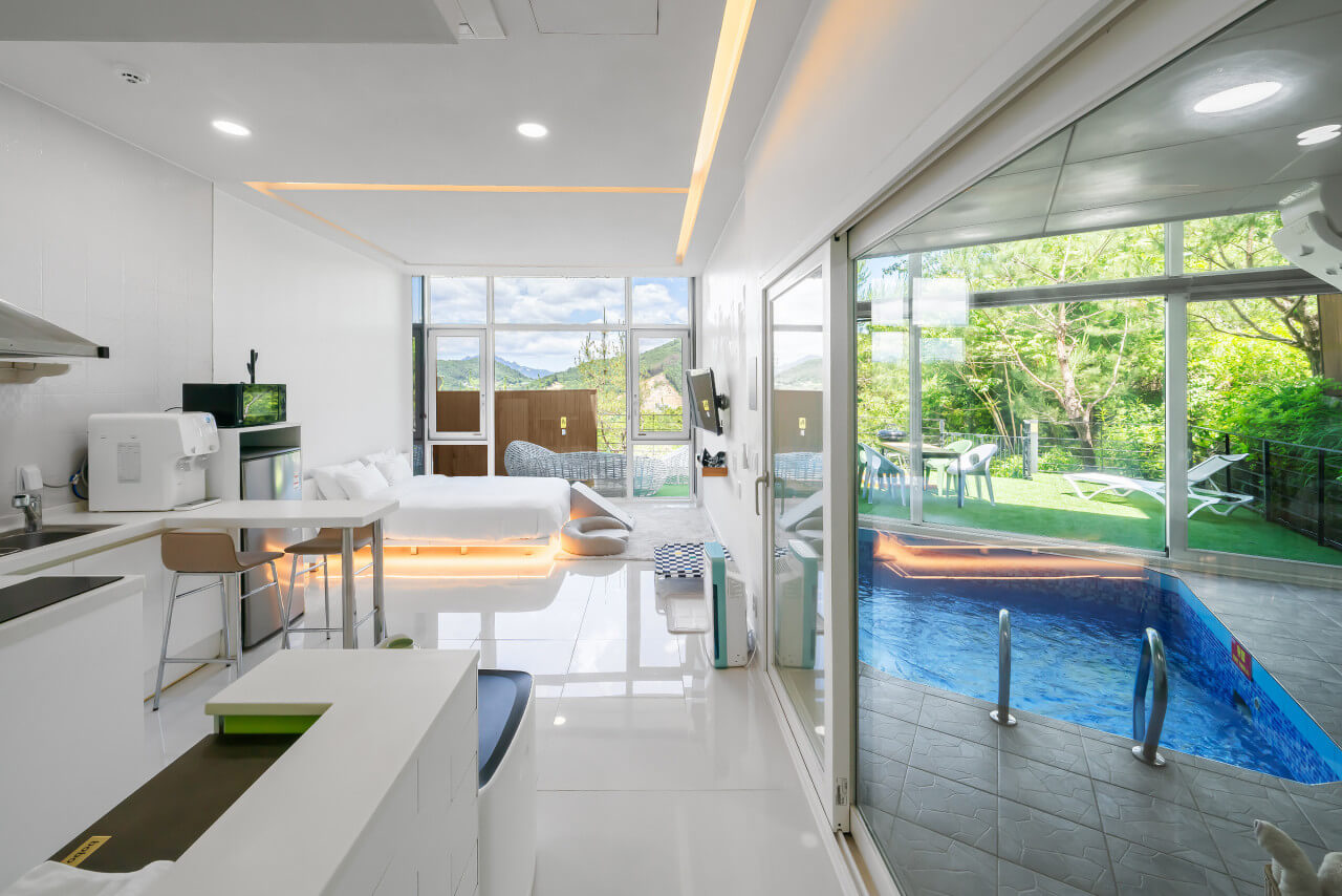 편의시설 및 서비스 : 풀빌라, 스파, 복층, 개별바비큐, 조식제공, 파티, 픽업, 모던함