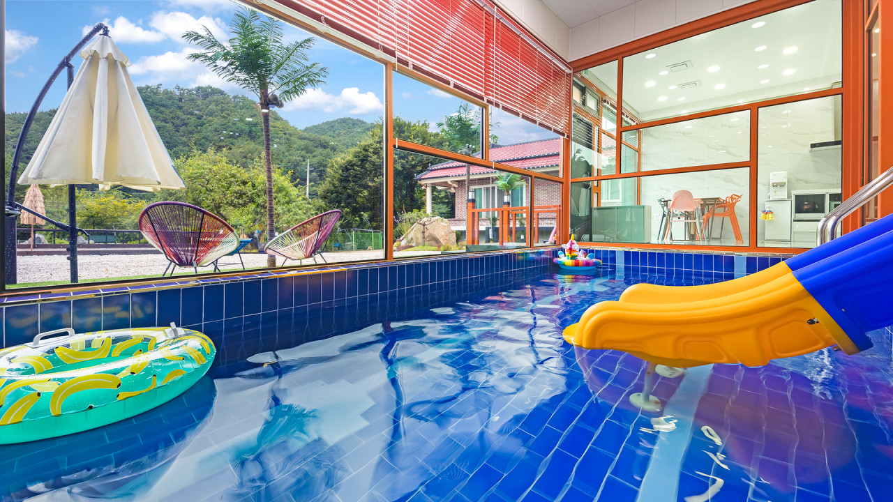 편의시설 및 서비스 : 풀빌라, 키즈테마, 수영장, 개별바비큐, 잔디, 체험활동