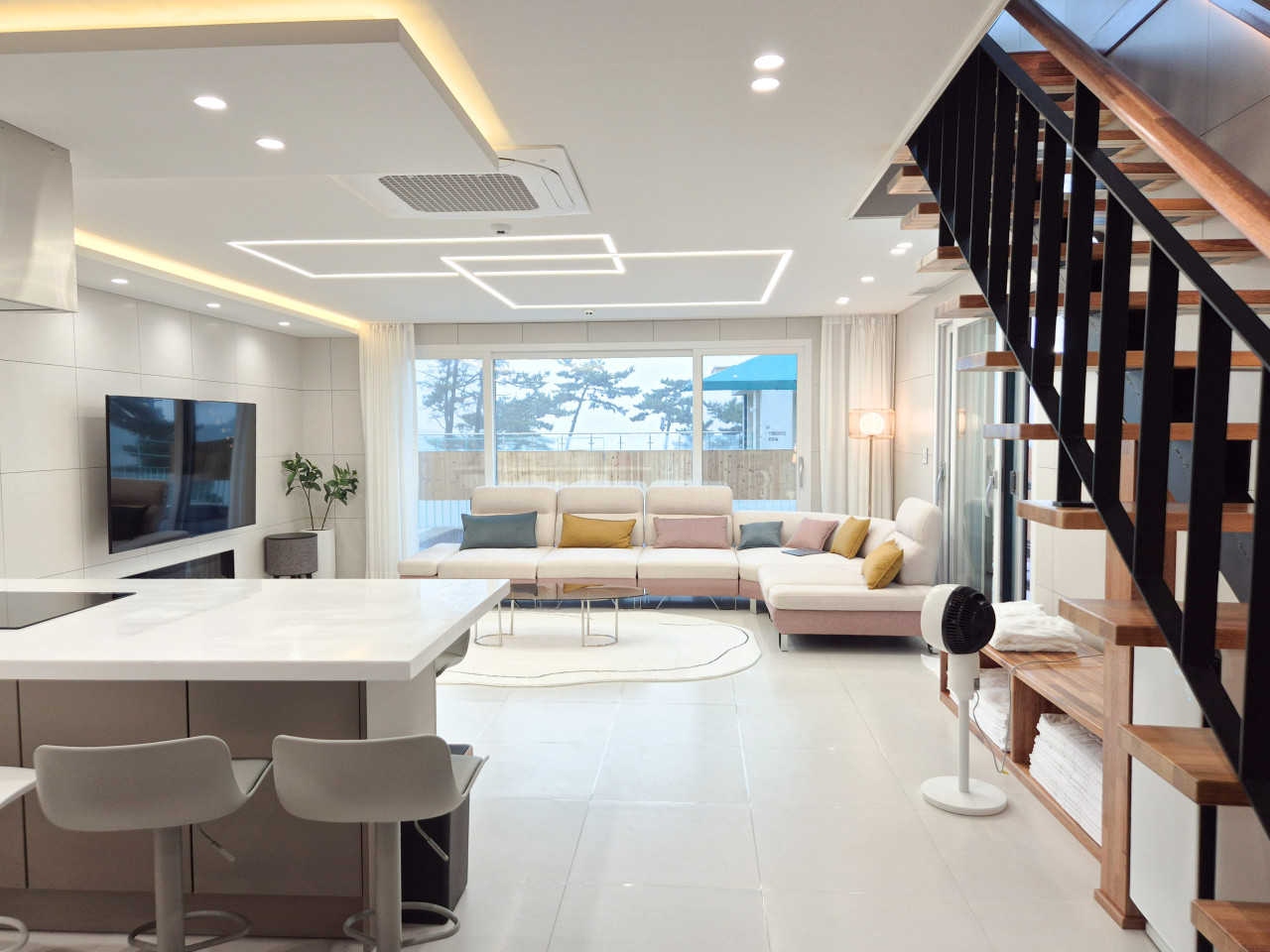 장점 : 바닷가 바로 앞에 위치한 펜션으로 탁 트인 오션뷰를 감상할 수 있는 독채 펜션