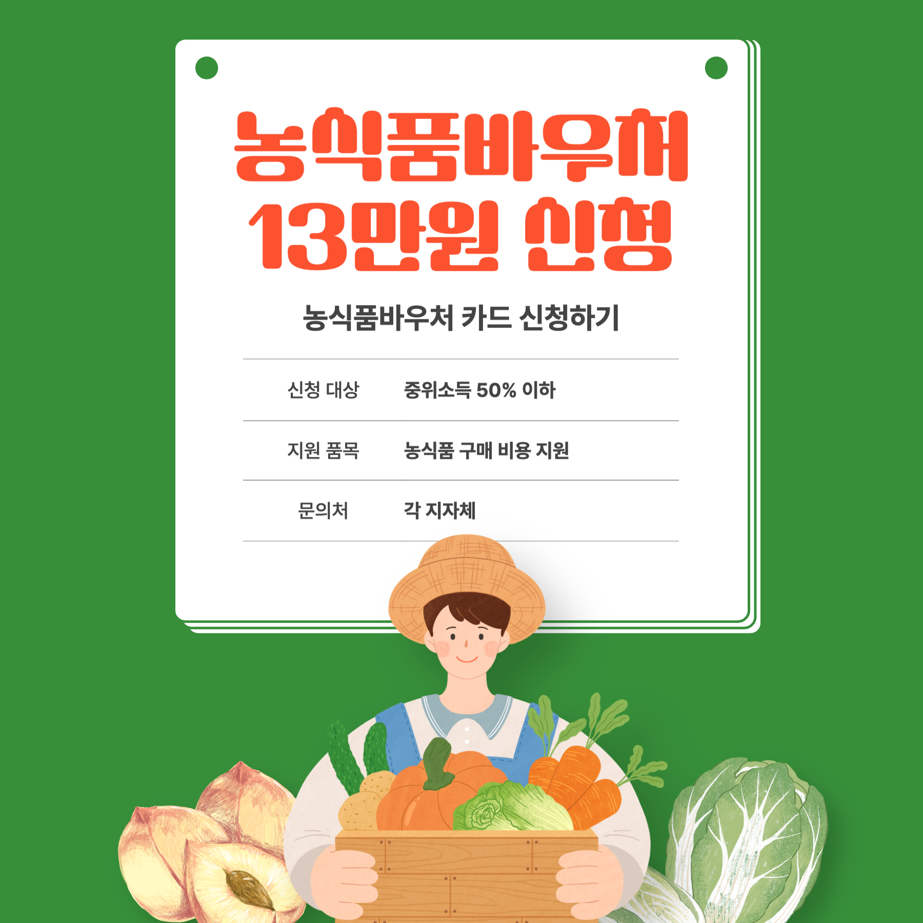나라에서 지원하는 농식품바우처 신청하고 13만원 혜택 받으세요!