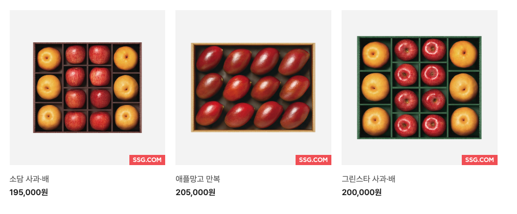10만 원대에서 20만 원 초반대의 다양한 과일 세트가 준비되어 있습니다.