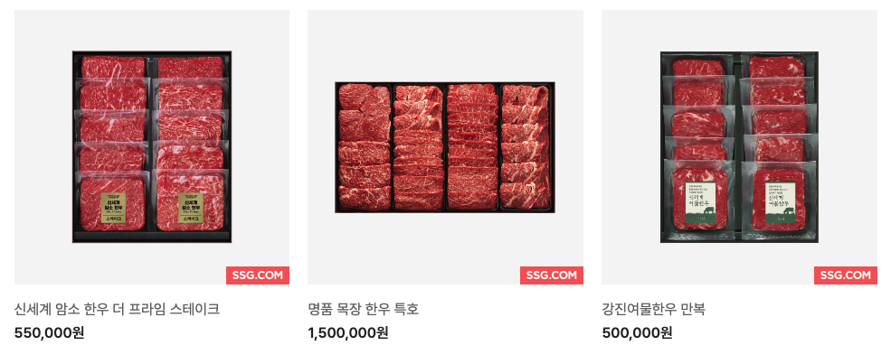 다양한 가격대와 등급의 한우가 준비되어 있습니다.