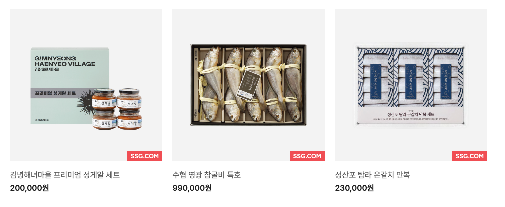 굴비: 135,000원부터 450,000원까지 다양하게 준비되어 있습니다.
