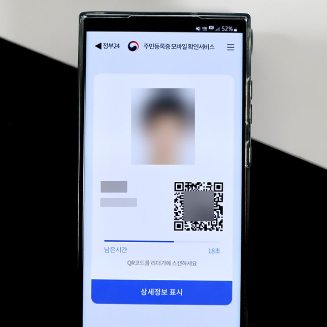 발급이 완료되면 본인의 사진, 이름, 인증 가능한 QR코드가 화면에 표시됩니다.