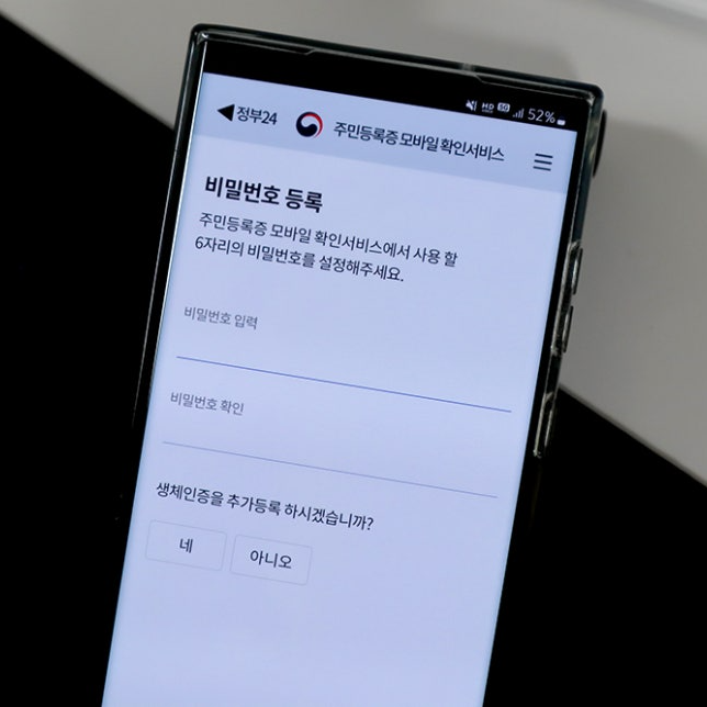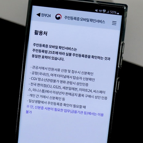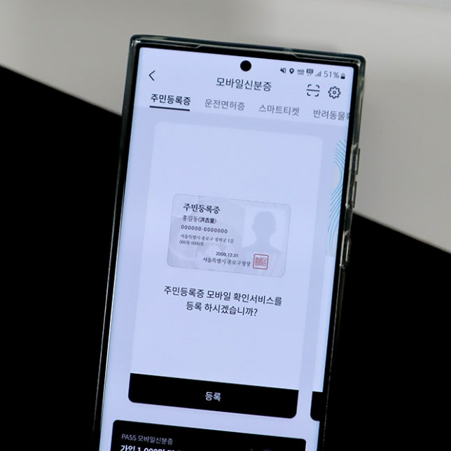 실물 주민등록증과 USIM이 장착된 본인 명의의 스마트폰이 필요합니다.