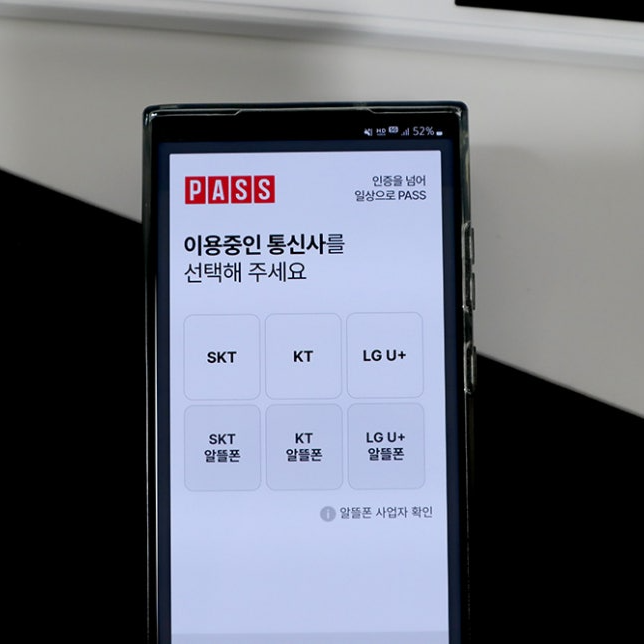 통신사를 선택하고 PASS 인증 절차를 진행합니다.