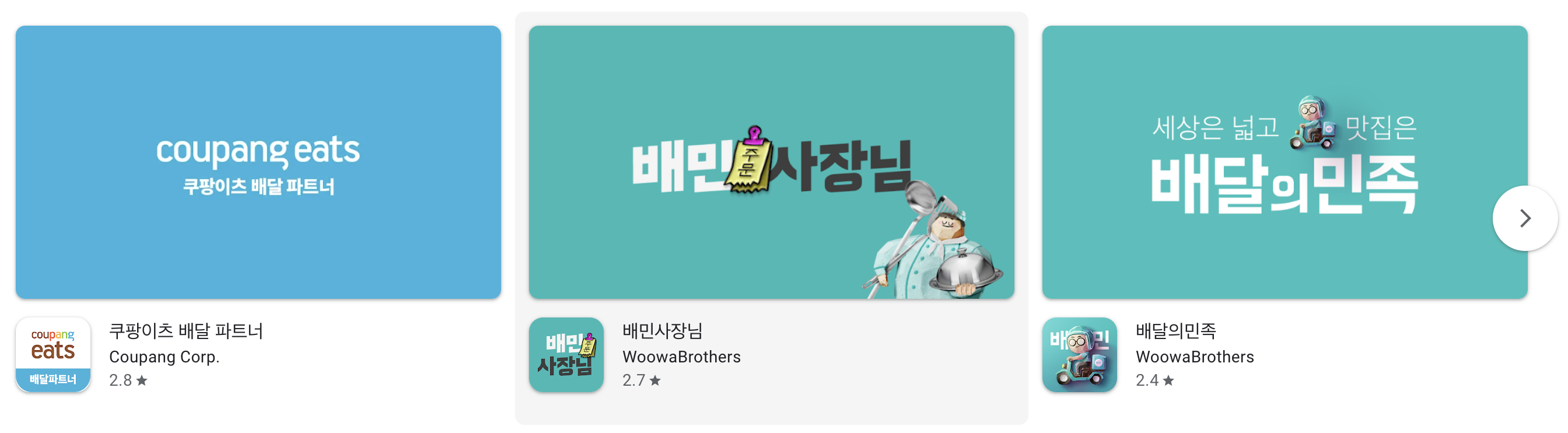 갤럭시 스마트폰에서는 Play 스토어를 열고 '배민커넥트'를 검색하세요.