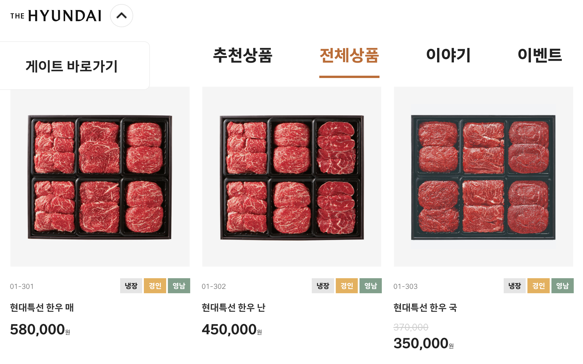 신선식품, 건강식품, 주류 등 다양한 상품군에서 선택할 수 있으며, 대표적인 예로는 ‘한우특선 스테이크 기프트(43만2000원)’와 ‘저탄소 한우 명품 기프트(43만2000원)’ 등이 있습니다.