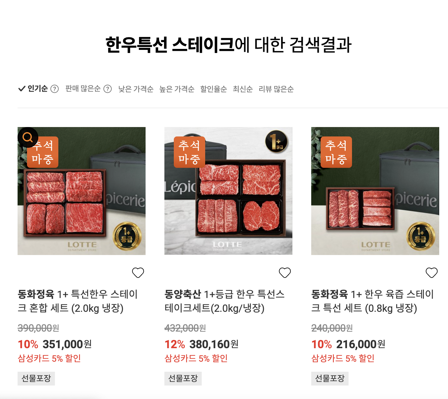 롯데,현대,신세계 각 백화점 별 대표 제품군과 가격대를 비교해보시고 센스있는 추석 선물세트 구매에 성공하시길 바랍니다.