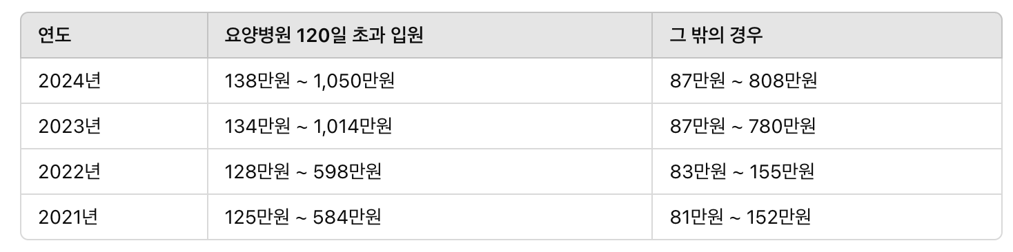 본인부담상한액은 요양병원 입원일수와 소득에 따라 달라집니다.