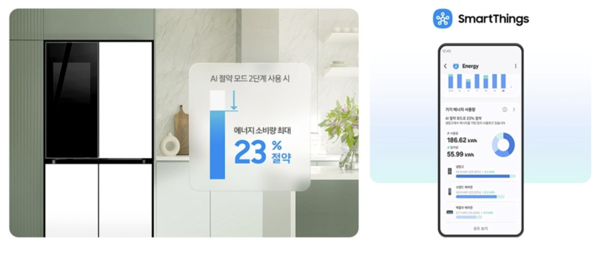이 냉장고는 AI 절약 모드를 적용하여 최대 23% 에너지 절감이 가능하며,