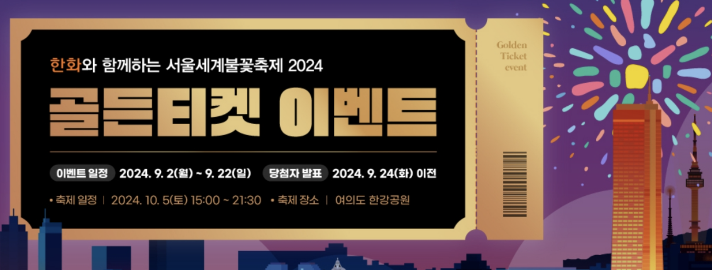 2024 서울세계불꽃축제 골든티켓 응모하는 방법과 실시간으로 생중계 볼 수 있는 방법까지 한번에 알려드리겠습니다. 나만 알고 싶은 명당자리와 명당뷰 호텔까지 정보 알려드릴테니 먼저 예
