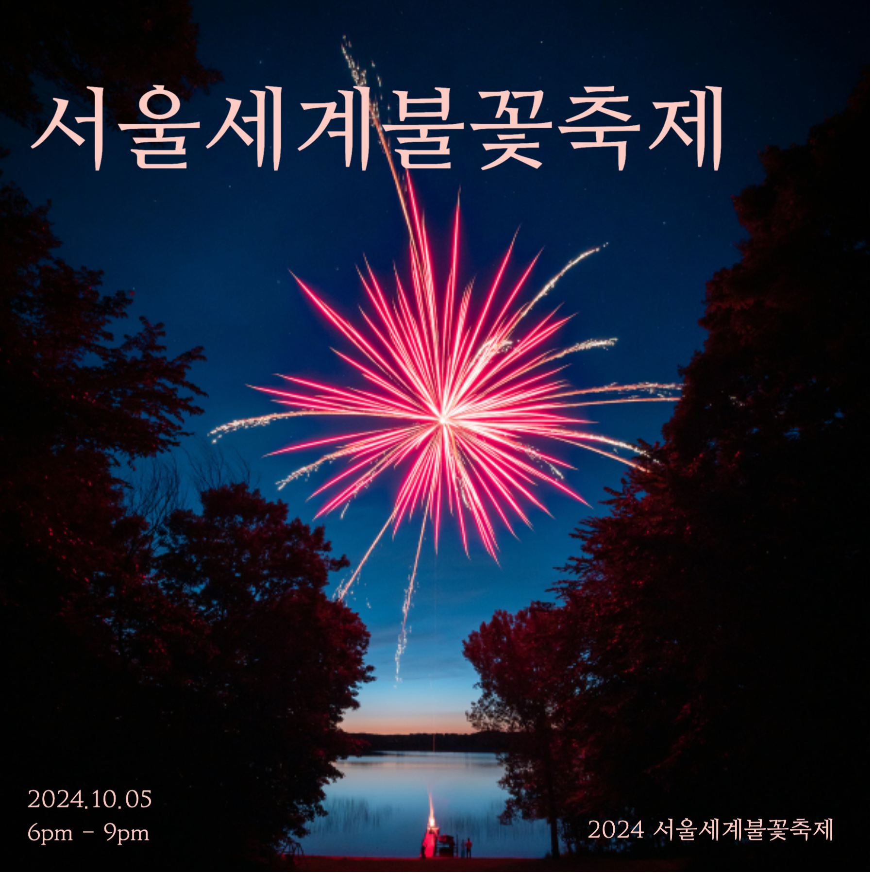 2024 여의도 불꽃축제 기간이 얼마남지 않았습니다. 명당자리와 호텔을 미리 예약하세요. 명당호텔 예약하기✅ 2024 여의도 불꽃축제 기본정보 서울세계불꽃축제가 2024년 10월 5일(토