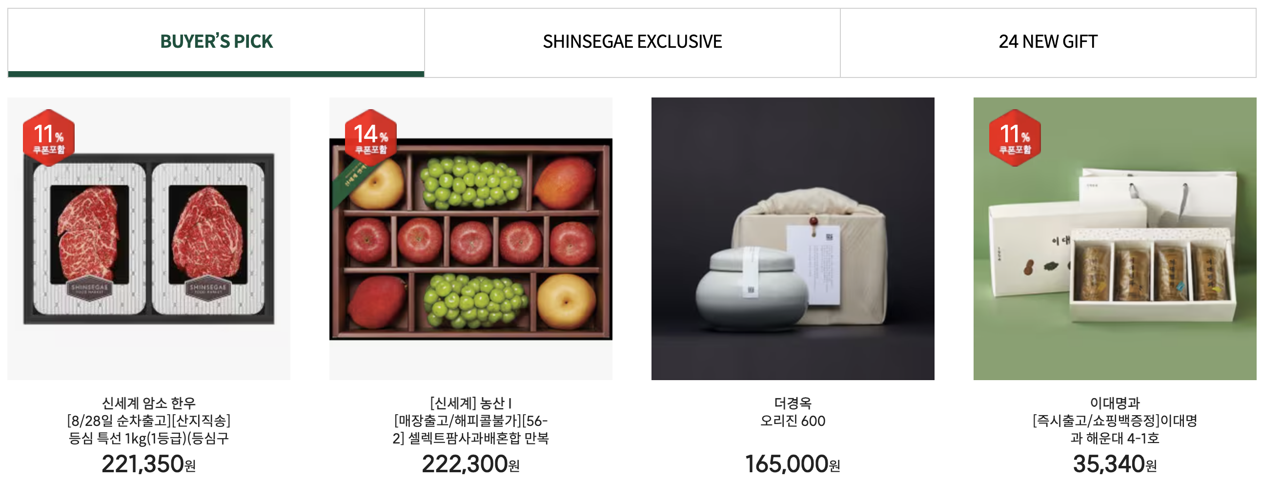 신세계백화점 추석 선물세트 가격대별 구매하기
