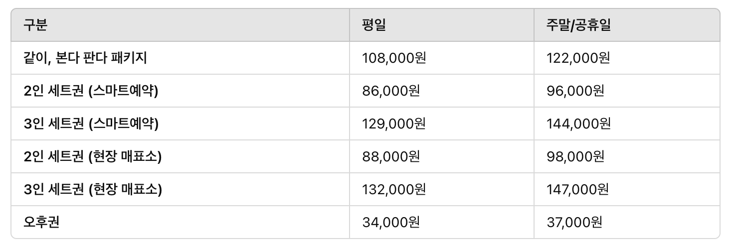 성수기와 비수기 요금 차이도 있으니, 방문 전 가격과 혜택을 꼼꼼히 확인하는 것이 중요합니다.