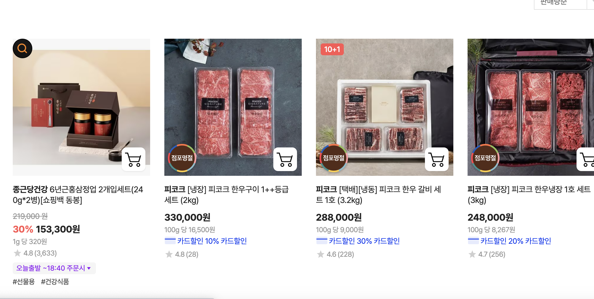 - 4~5만원 대 식품 선물 세트: 표고버섯 모음 세트, 웰빙 견과류 세트 등 요리 재료와 관련된 가공식품도 최대 35% 할인된 가격에 제공됩니다.