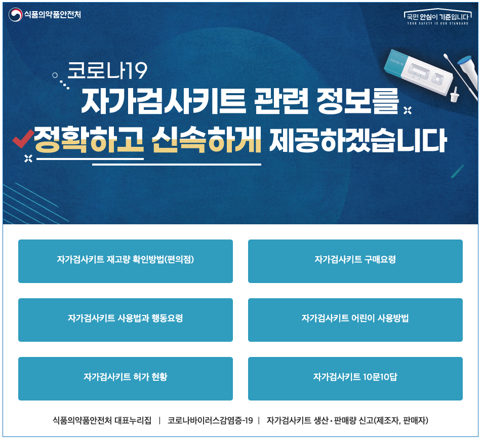 식품의약품안전처에서는 편의점 재고 확인 및 자가검사 키트 구매시 사용법과 행동요령 등 유용한 정보를 제공하고 있습니다.