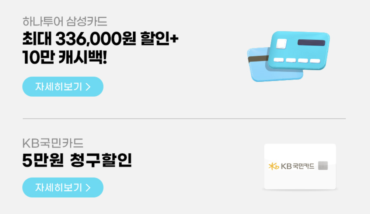 제휴 카드: 하나투어는 다양한 제휴 카드와 협력하여 할인 혜택을 제공합니다.